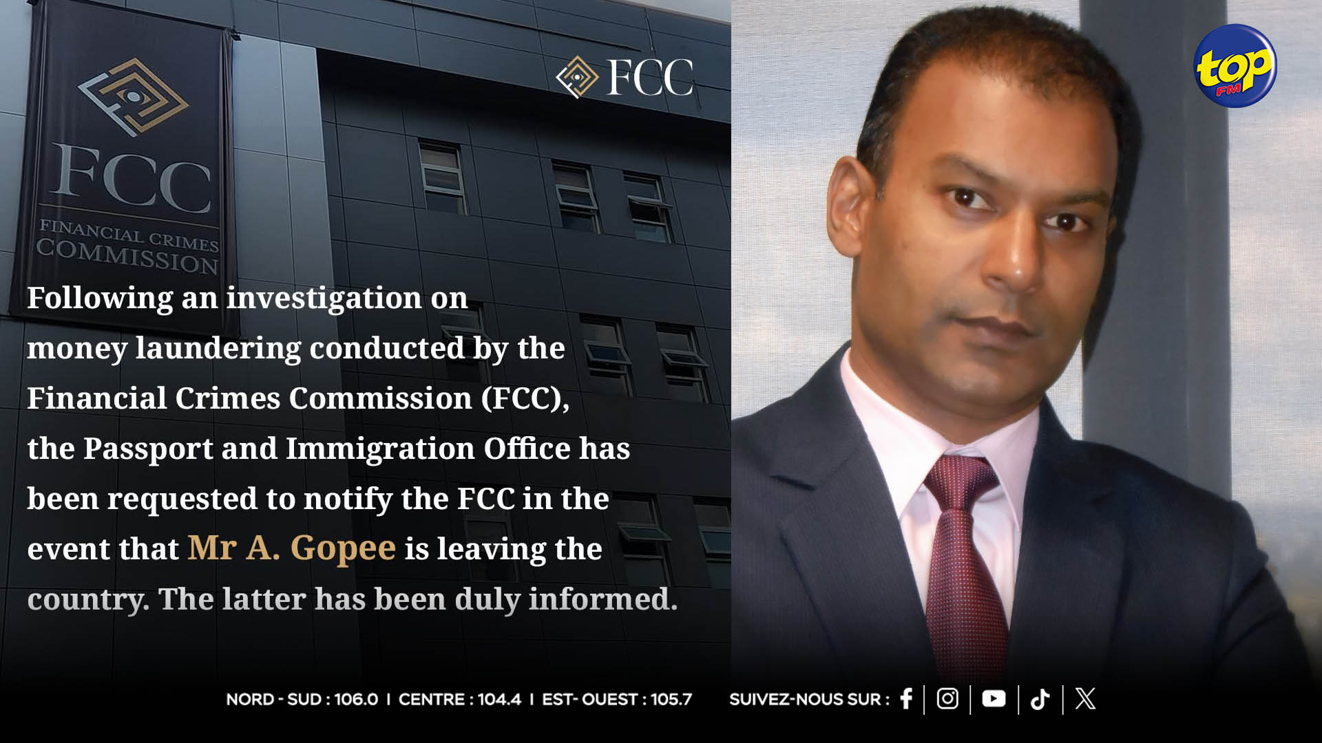 La Financial Crimes Commission (FCC) a émis un communiqué à l’encontre de l’homme d’affaires Avinash Gopee dans le cadre d’une enquête pour blanchiment d’argent.