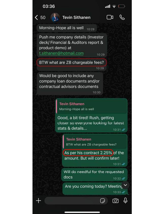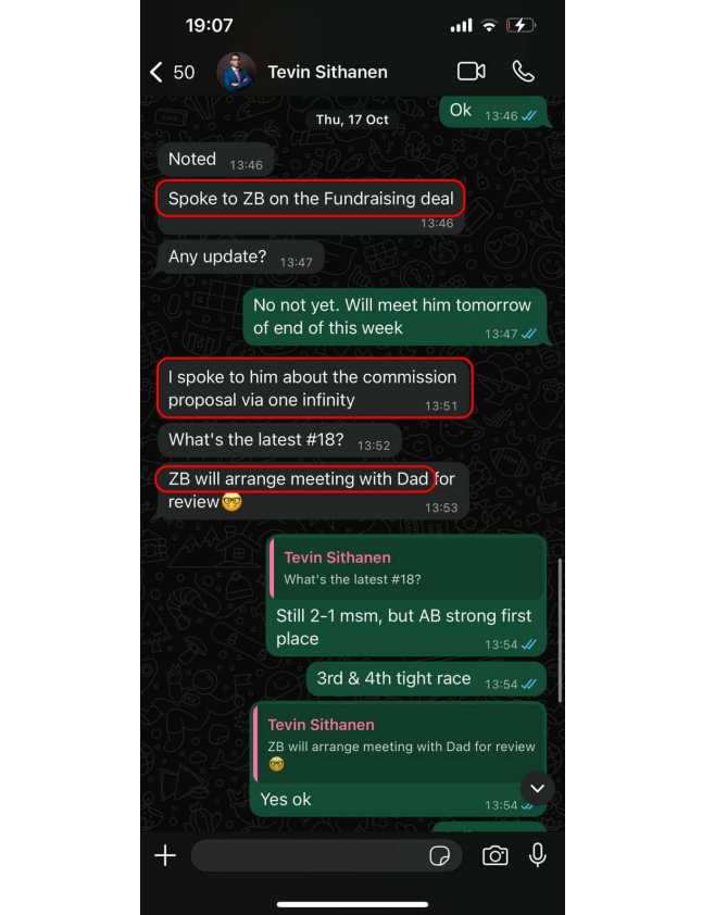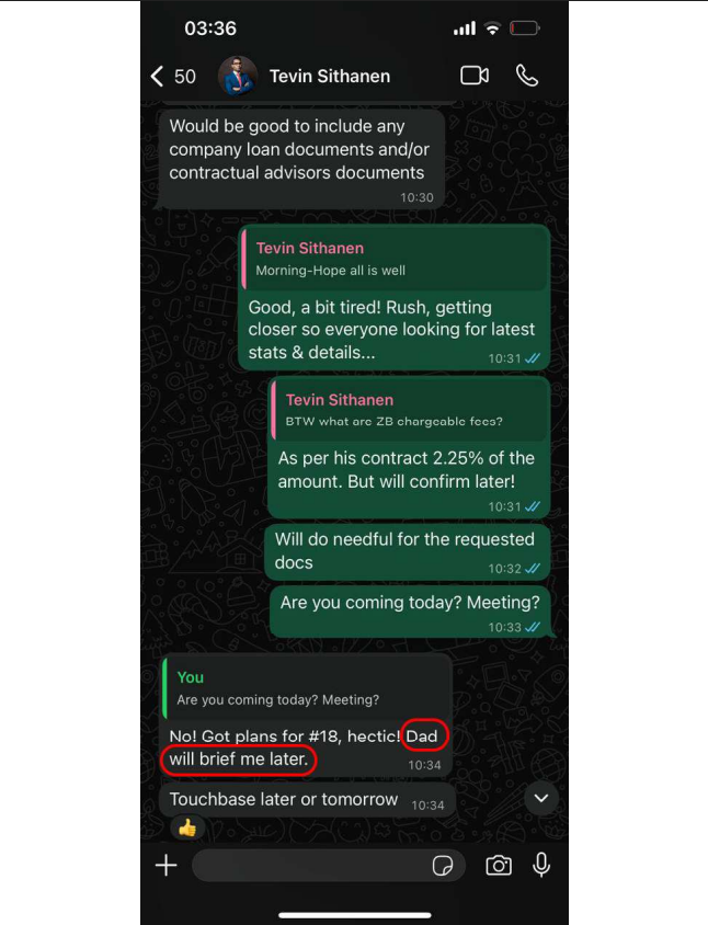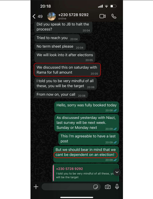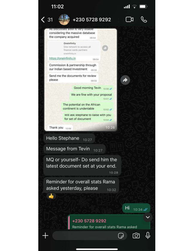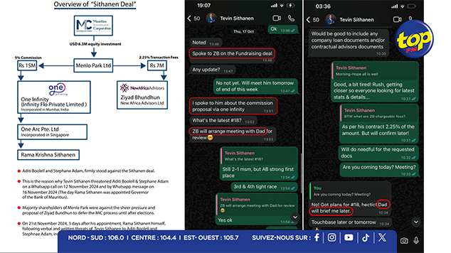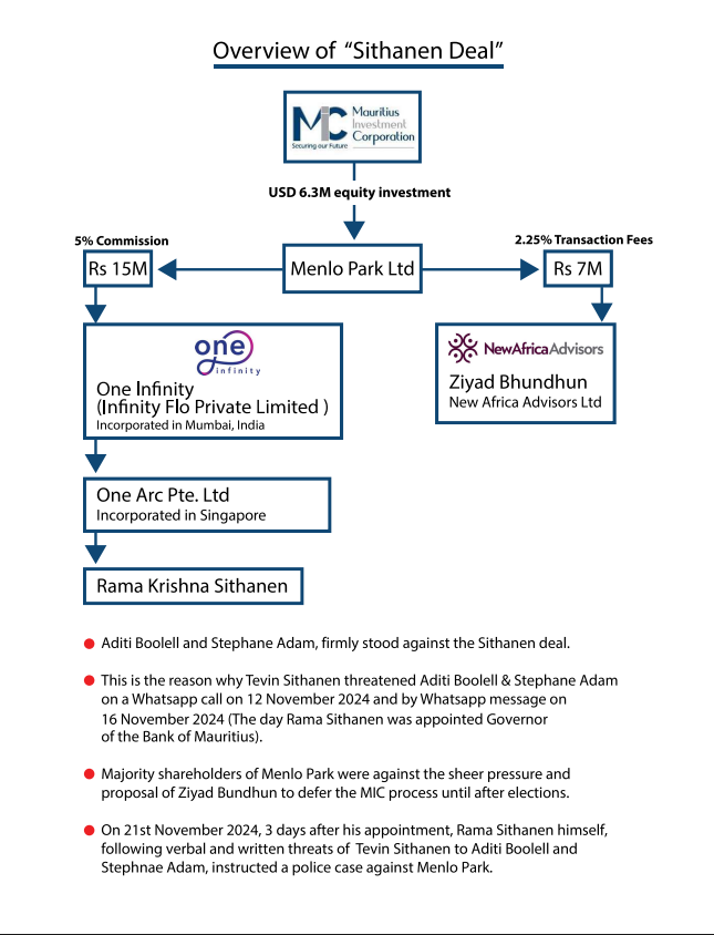 Selon le document signé par Mary Queenie Adam, des échanges entre Rama Sithanen, son fils Tevin Sithanen et Ziyad Bundhun auraient précédé l’octroi d’un financement de Rs 45 millions de la MIC à Menlo Park, en contrepartie de commissions illicites.