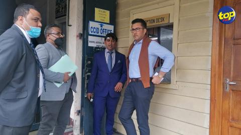 Main picture Interpellation des deux plaisanciers, Jonathan et Josué Dardenne : discussions entre Me Shakeel Mohamed et des officiers au CCID ce matin. voir plus