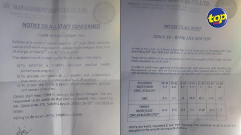 Main picture Casino de Maurice : mesures disciplinaires contre les employés qui n’ont pas été soumis au test de dépistage du Covid-19 voir plus