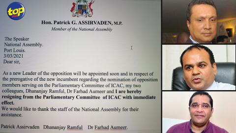Main picture Conséquences de la démission du Dr Arvin Boolell en tant que leader de l’opposition : les députés rouges Patrick Assirvaden, Ramful et Aumeer soumettent leur démission du Comité parlementaire de l’ICAC voir plus