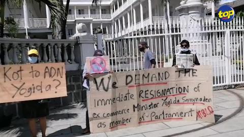 Main picture Devant l’Hôtel du gouvernement hier : Une manifestation pour réclamer la démission de Yogida Sawmynaden du Parlement voir plus