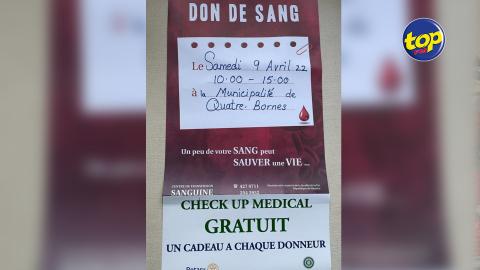 Main picture Ce samedi 9 avril à Quatre Bornes : Don de sang à la Municipalité de 10 à 15 heures voir plus