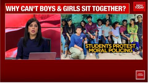 Main picture Ségrégation garçons filles : Des étudiants indiens s’assoient sur les genoux des uns des autres pour protester voir plus