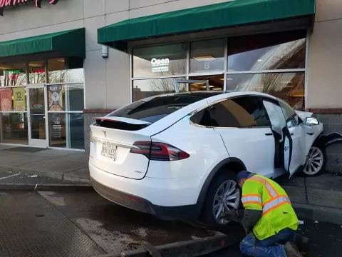 Main picture Une Tesla défonce un immeuble en raison d’un dysfonctionnement – le conducteur légèrement blessé voir plus