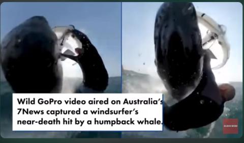 Main picture Une baleine lui saute dessus en pleine mer : Un surfer passe à 2 doigts de la mort voir plus