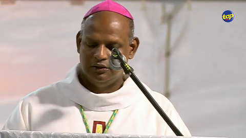 Main picture Au caveau du Bienheureux Père Laval hier : Mgr Durhône parle de trois peines que chaque pays affronte, à savoir les problèmes familiaux, les accidents de la route et le changement climatique voir plus