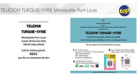 Main picture Séisme en Turquie et en Syrie ayant fait plus de 50 000 morts : Un Teledon organisé à la mairie de Port-Louis ce mardi voir plus