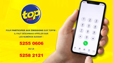 Main picture Pour participer aux émissions sur TOPFM : il faut désormais appeler sur les numéros suivant : 5255 0606 ou le 5258 2121 voir plus