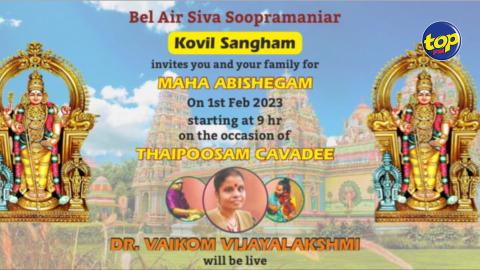 Main picture Thaipoosam Cavadee : Dre Vaikom Vijayalakshmi au Siva Soopramaniar Kovil Sangham de Bel Air ce mercredi voir plus
