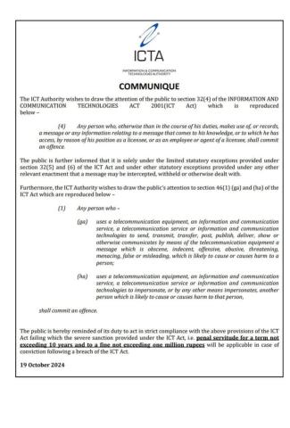 Main picture « Toute personne qui, autrement que dans le cadre de ses fonctions, utilise ou enregistre un message ou toute information y relative dont elle a connaissance, ou à laquelle elle a accès, en raison de sa position , commet un délit » Indique l’ICTA dans u voir plus