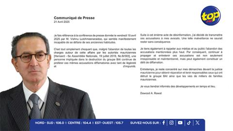 Main picture Affaire BAI : Dawood Rawat enclenche la riposte judiciaire face aux accusations persistantes de Lutchmeenaraidoo voir plus
