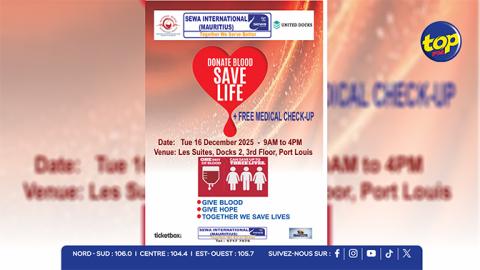 Main picture Don de sang : Sewa International organise une collecte ce mardi 16 décembre au Docks à Port-Louis voir plus