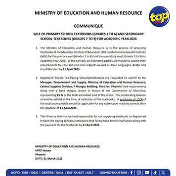 Main picture Achat de manuels scolaires : les établissements invités à faire part de leurs nécessités pour 2026 voir plus
