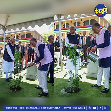 Main picture Ek Ped Maa Ke Naam : mise en terre d’un arbuste par Narendra Modi et Navin Ramgoolam voir plus