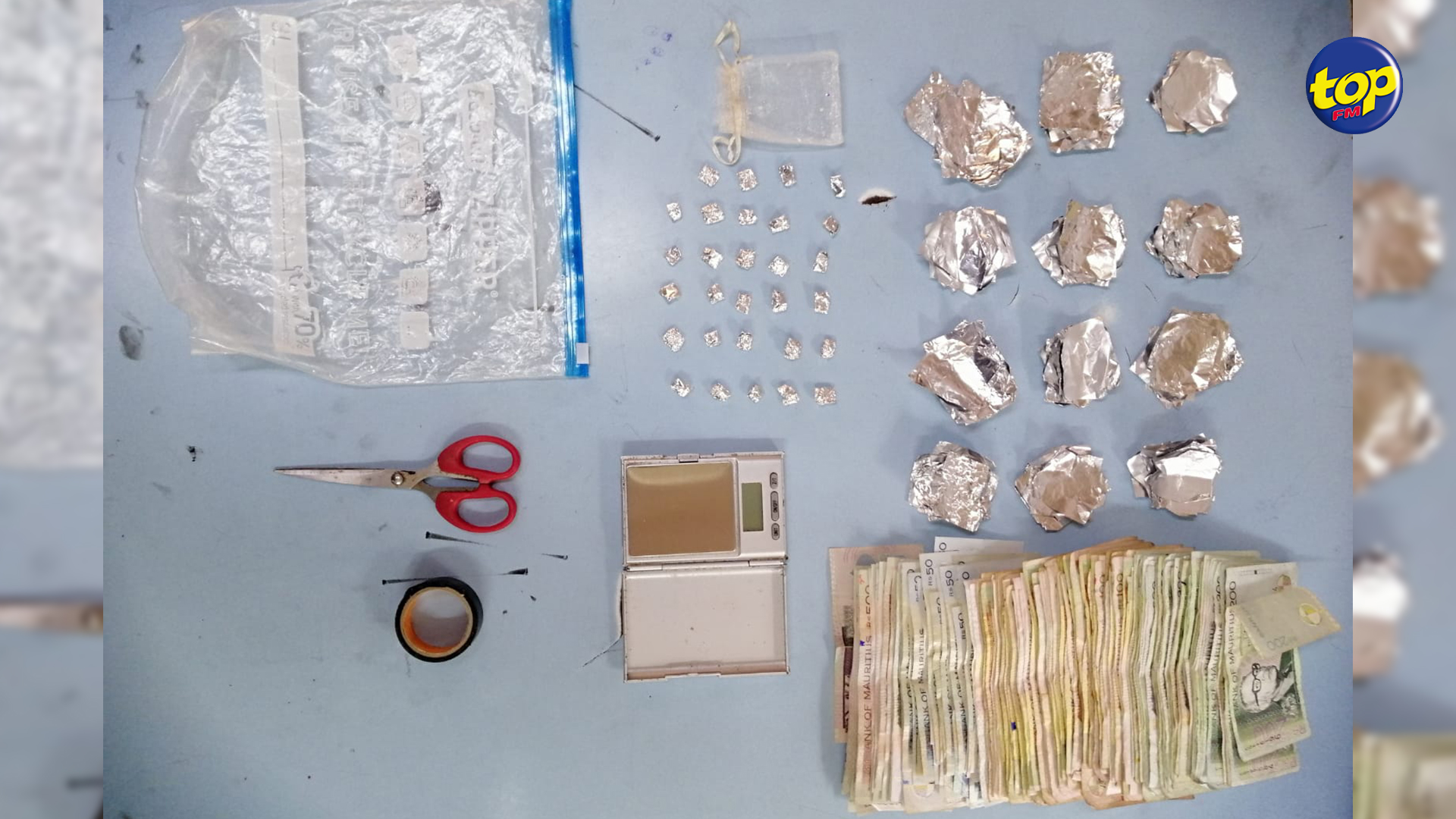 Ils ont découvert 29 sachets contenant du papier en aluminium recouvert d’héroïne, une paire de ciseaux, une balance électronique et une somme de Rs 29 975.