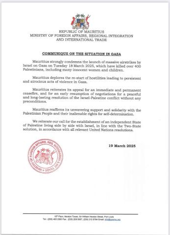 Main picture Gaza : Maurice condamne les frappes israéliennes ayant causé la mort de 400 Palestiniens voir plus