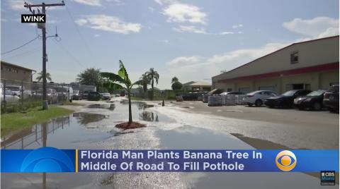 Main picture Pour protester contre les nids-de-poule : Il plante un bananier au milieu de la rue voir plus
