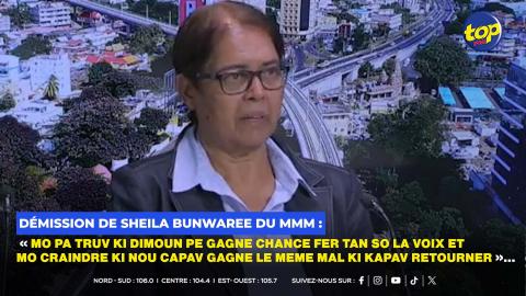 Main picture Dรฉmission de Sheila Bunwaree du MMM : ยซ Mo pa truv ki dimoun pe gagne chance fer tan so la voix et mo craindre ki nou capav gagne le meme mal ki kapav retourner ยป, soutient la dรฉmissionnaire voir plus