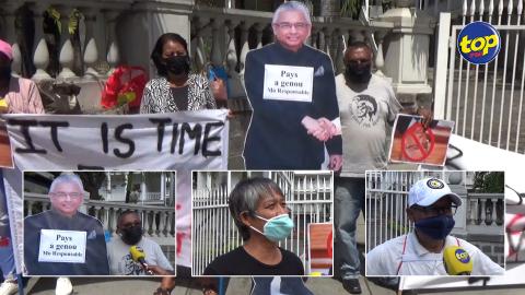 Main picture Manifestation devant l’Hôtel du gouvernement en début d’après-midi : la pancarte grandeur nature à l’effigie de Pravind Jugnauth vole la vedette voir plus