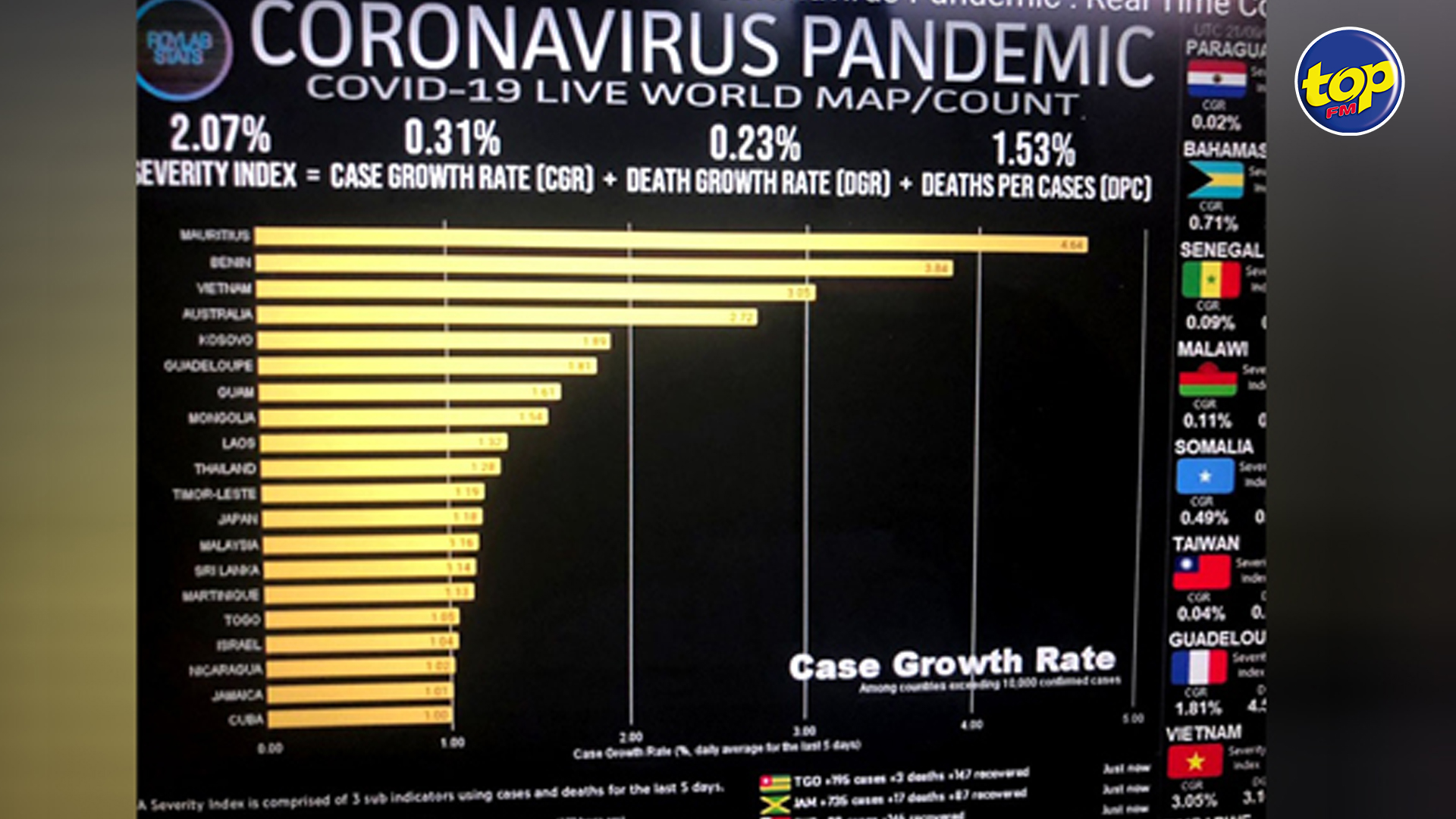 4,64 %…C’est le taux de croissance de la contamination de la Covid-19 à Maurice. Chiffre avancé par le site en ligne Roylab Stats. Ainsi, dans la catégorie des pays dont les cas confirmés dépassent les 10,000, Maurice arrive en pole position.