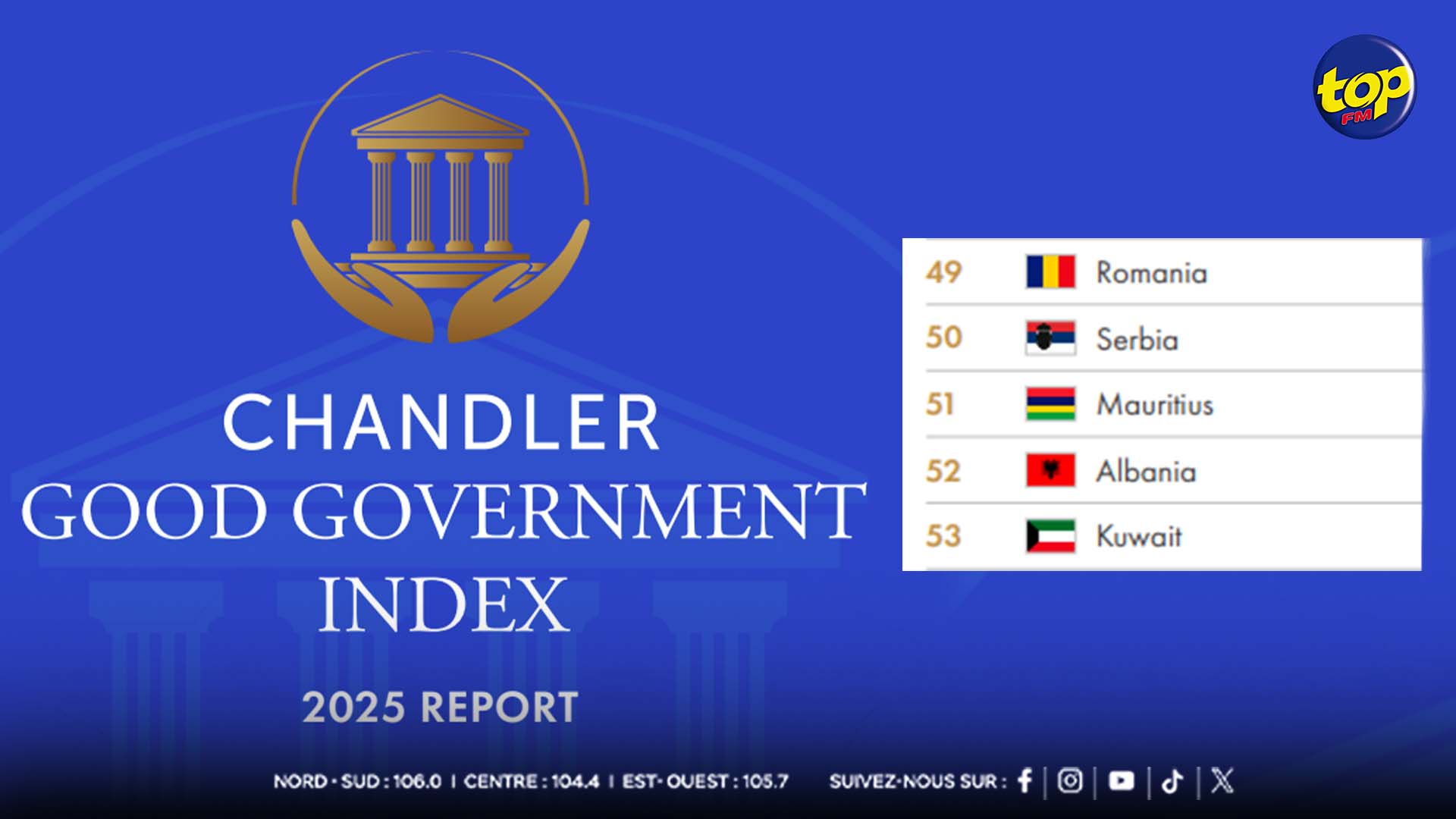 Selon le ‘Chandler Good Government Index’ (CGGI) 2025, Maurice continue sa chute dans le classement mondial des pays les mieux gouvernés. Le pays se positionne à la 51ᵉ place, soit une perte de cinq rangs par rapport à l’exercice 2024.