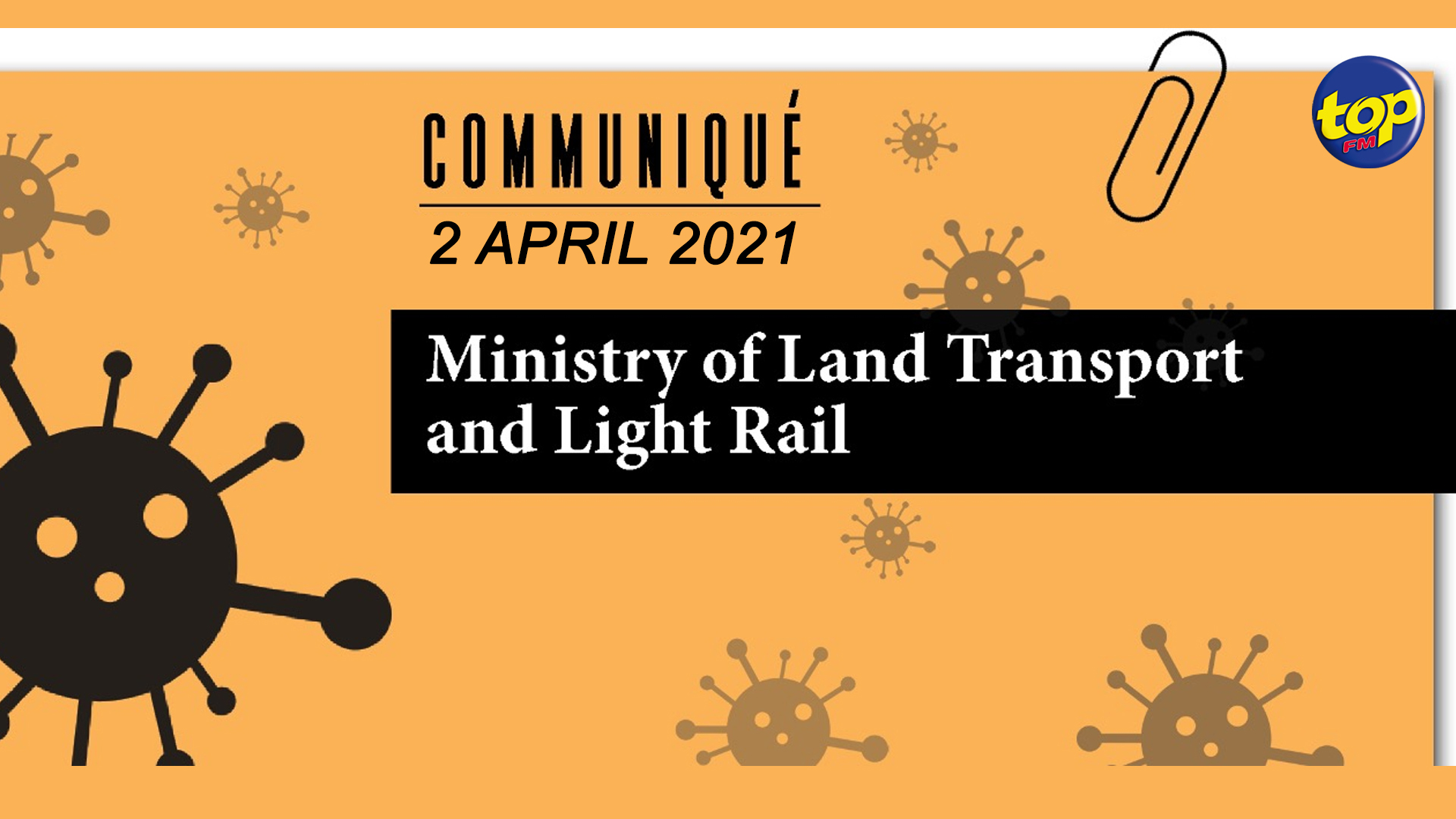 In the context of the partial resumption of economic activities, the Ministry of Land Transport and Light Rail wishes to inform transport operators and the public of the promulgation of the Road Traffic (COVID-19 Sanitary Measures) Regulations 2021 and the Light Rail (COVID-19 Sanitary Measures) Regulations 2021 with a view to ensuring safe conveyance of commuters.
