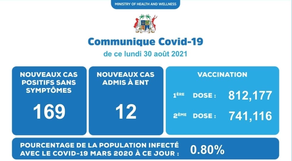 Chiffre communiqué par le ministère de la Santé ce lundi. 169 patients sont asymptomatiques alors que 12 patients sont admis à l’hôpital ENT.