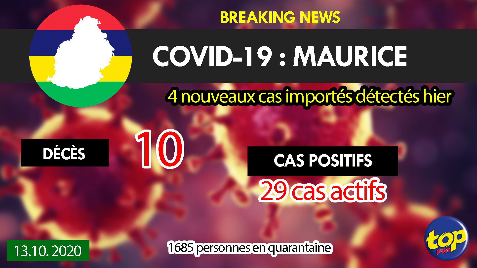 A ce jour Maurice compte désormais 29 cas actifs et 1685 personnes en quarantaine.