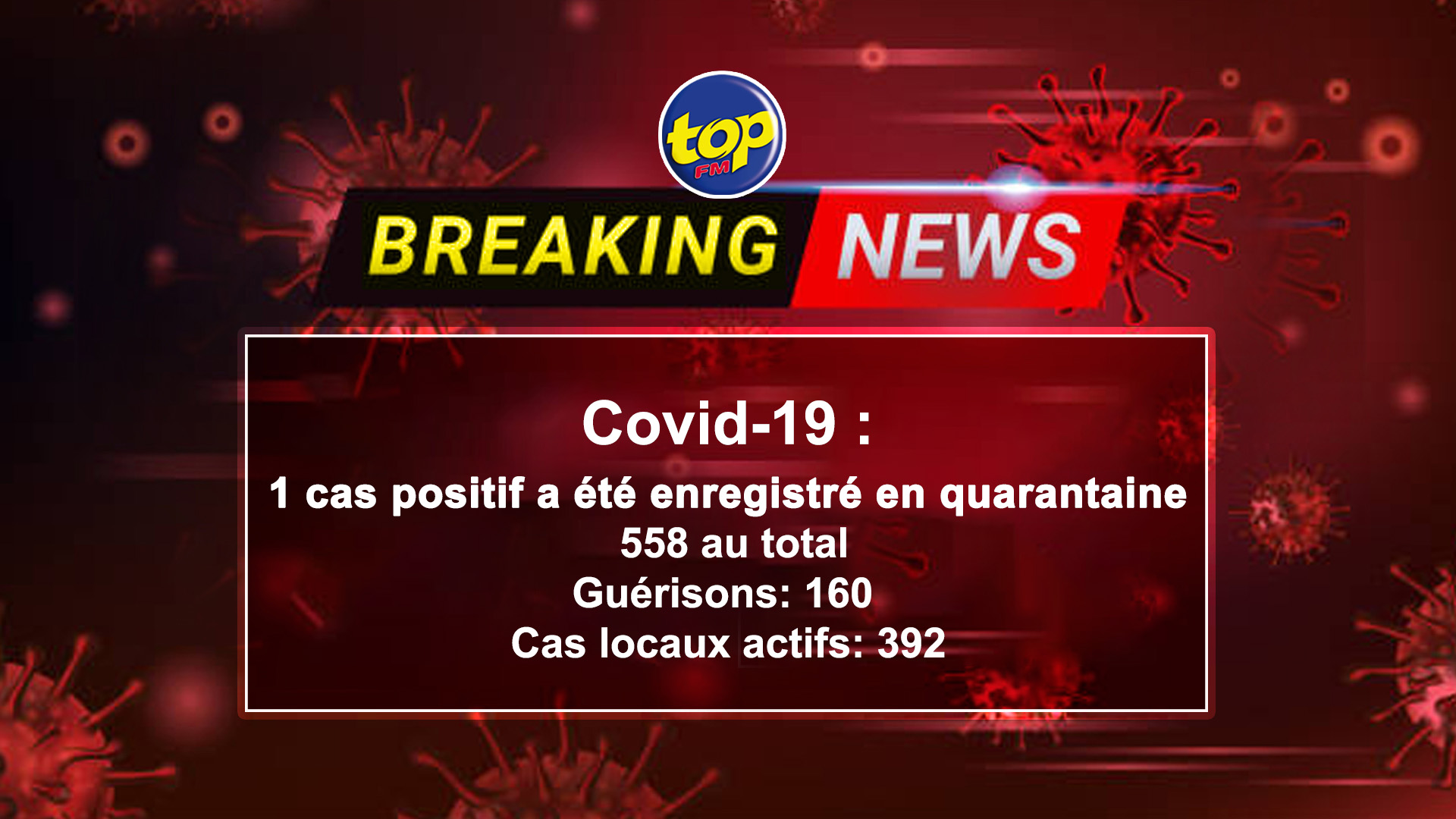 Le nombre de cas actifs au niveau local est donc de 392.