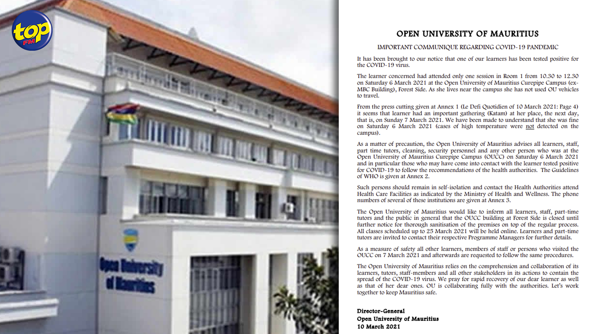 C’est ce qui ressort d’un communiqué émis par l’organisme ce mercredi. L’Open University of Mauritius explique que cette décision découle du fait que plusieurs régions ont été décrétées zone rouge après plusieurs cas de contamination détectés.