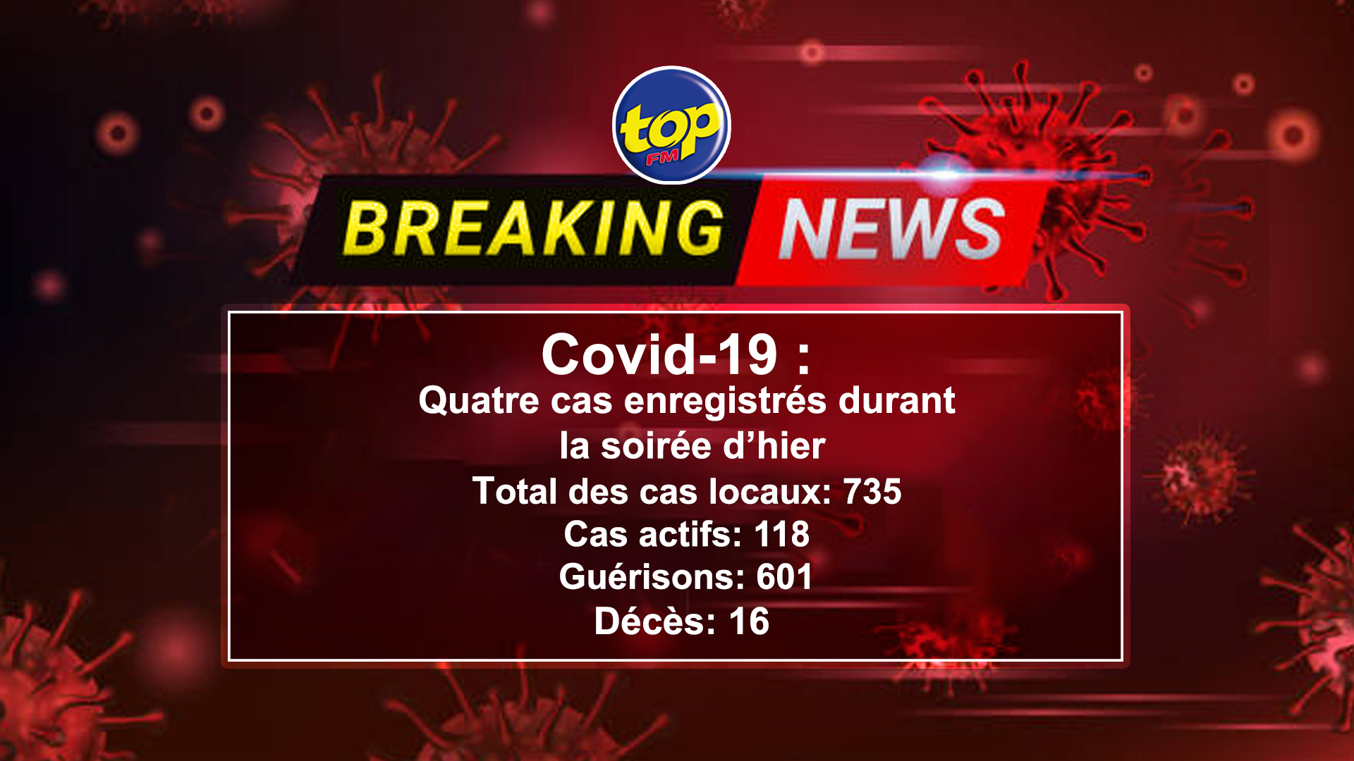 C’est ce qui ressort d’un communiqué émis par le ministère de la Santé. Ces quatre cas positifs de la COVID-19 ont été confirmés à 22 heures hier.