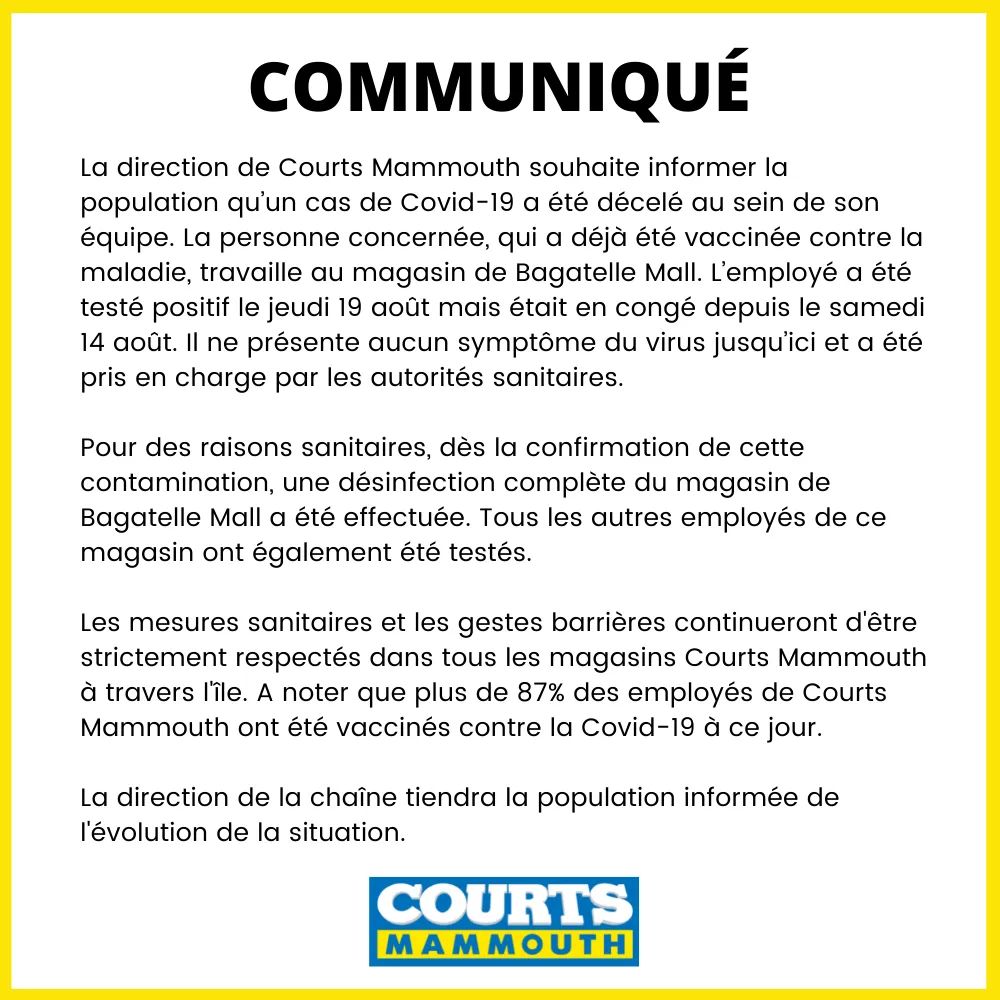 Il s’agit d’un employé qui était en congé depuis samedi. Il a été testé positif hier. L’employé a été pris en charge par les autorités sanitaires.
