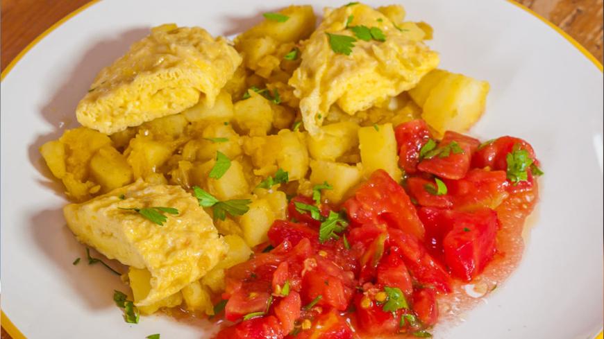 Déposez les omelettes sur les pommes de terre. La recette préconisait de cuire de nouveau 5 minutes , préférant une omelette pas trop cuite.