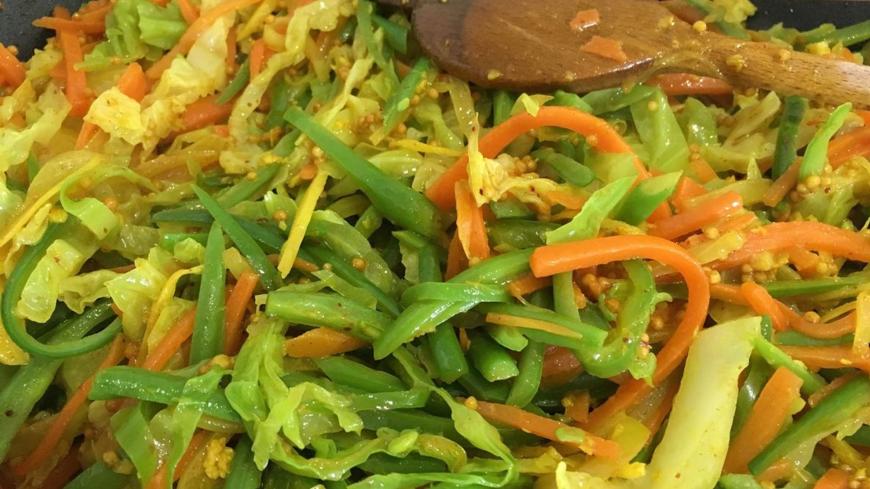 - 1Laver les légumes. Eplucher les carottes et les chouchous. Couper les gros piments dans le sens de la longueur. Equeuter les haricots verts. Hacher le chou. Tailler tous les légumes en lanières.