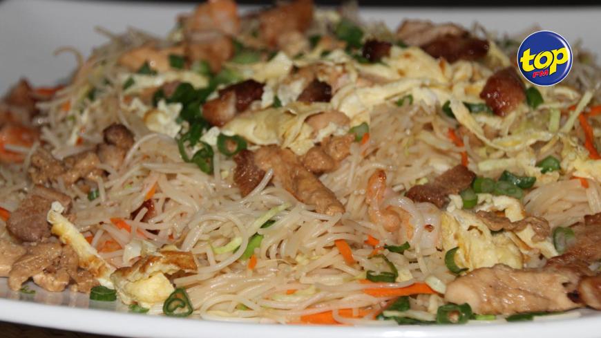 11- Ajouter l’omelette et le poulet au meefoon et mélanger délicatement.
