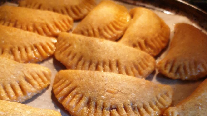 4. Faire 20 boules avec la pâte. Rouler les rouleaux (avec un rouleau à pâtisserie) un par un pour les arrondir. Mettez au centre de chaque boule un peu de noix de coco râpée. Plier en deux et sceller les bords avec une fourchette. Faites-les frire dans de l’huile chaude jusqu’à ce qu’ils soient bien dorés.