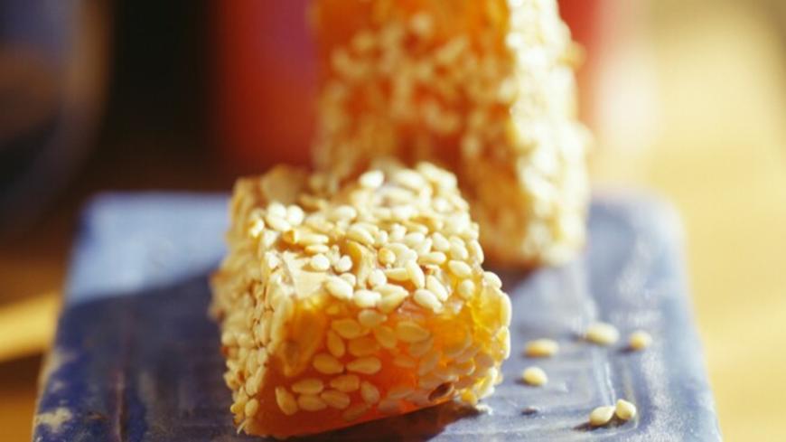 - Démoulez le nougat et coupez-le en cubes. Roulez dans le sésame avant de déguster.