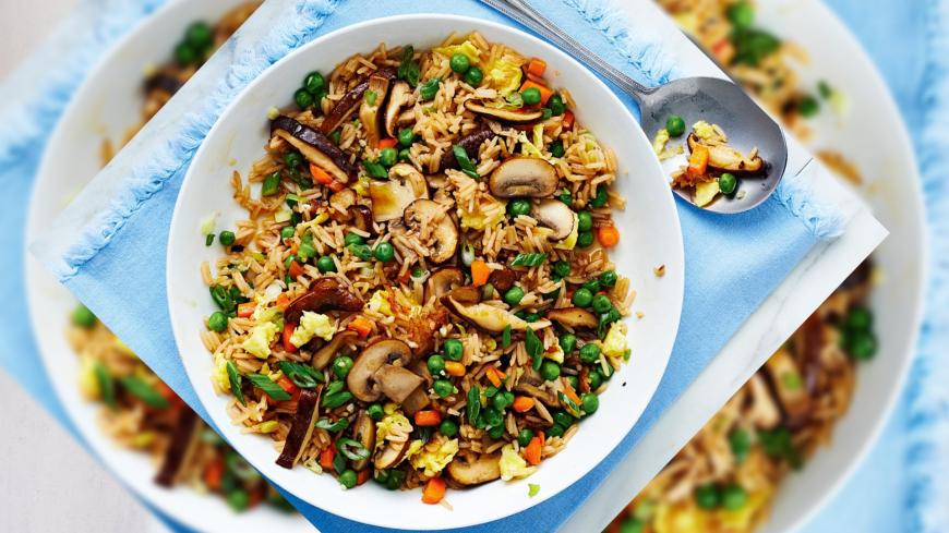 - Ajouter le riz et bien mélanger pour combiner. Continuez à mélanger le contenu pendant la cuisson à feu vif. Le récipient doit être bien graissé afin que le riz ne colle pas au récipient. Cuire à feu vif pendant 3-4 mètres en continu. Assaisonner de sel et de poivre en poudre et mélanger. Éteignez la flamme.