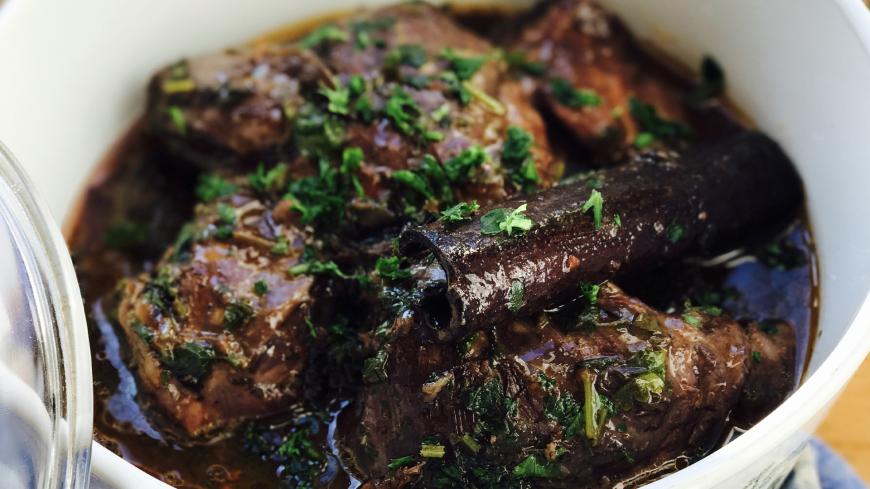 – Dans un grand faitout en fonte, avec de l’huile d’olive bien chaude, retirer la viande de la marinade et la plonger dans l’huile.