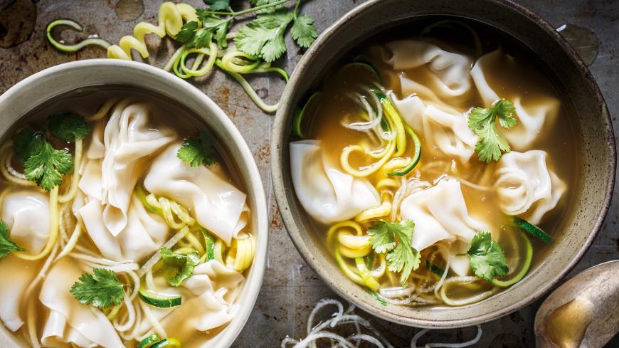 Recette : Soupe won-ton à la citronnelle et nouilles de légumes