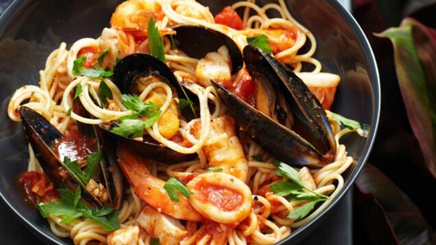 - Dans une sauteuse, faites chauffer l’huile et faites réchauffer les fruits de mer à couvert pendant 5 min. Versez le coulis de tomates et le persil ciselé pour 5 min supplémentaires.