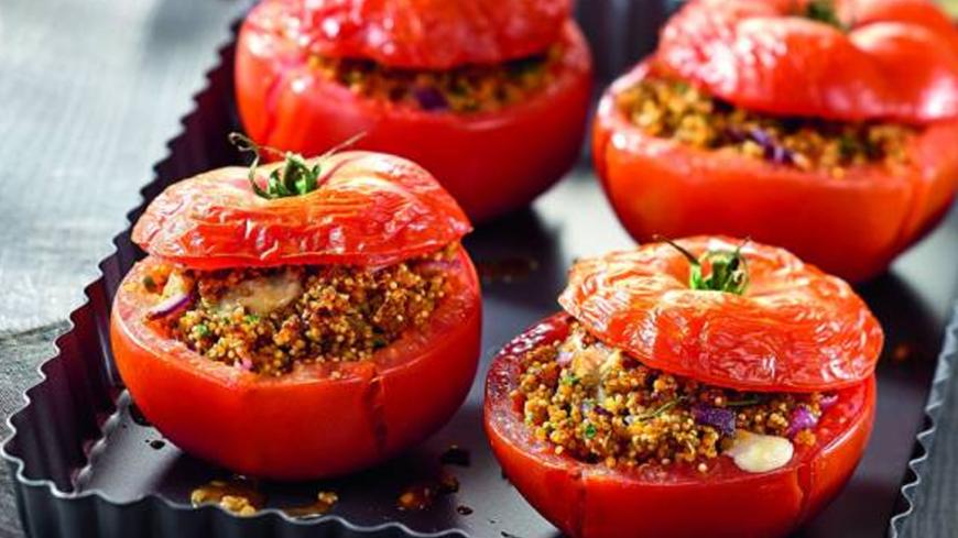Pour finirMettre cette farce dans les tomates évidées et les disposer dans un plat à gratin préalablement huilé. Couvrir les tomates de leur chapeau. Les arroser avec 2 cuillères à soupe d’huile d’olive puis les saupoudrer de chapelure. Enfourner pour environ 45mn (si le dessus des tomates venait trop à colorer, couvrir d’une feuille de papier aluminium pour terminer la cuisson). Déguster bien chaud avec du riz ou une salade.