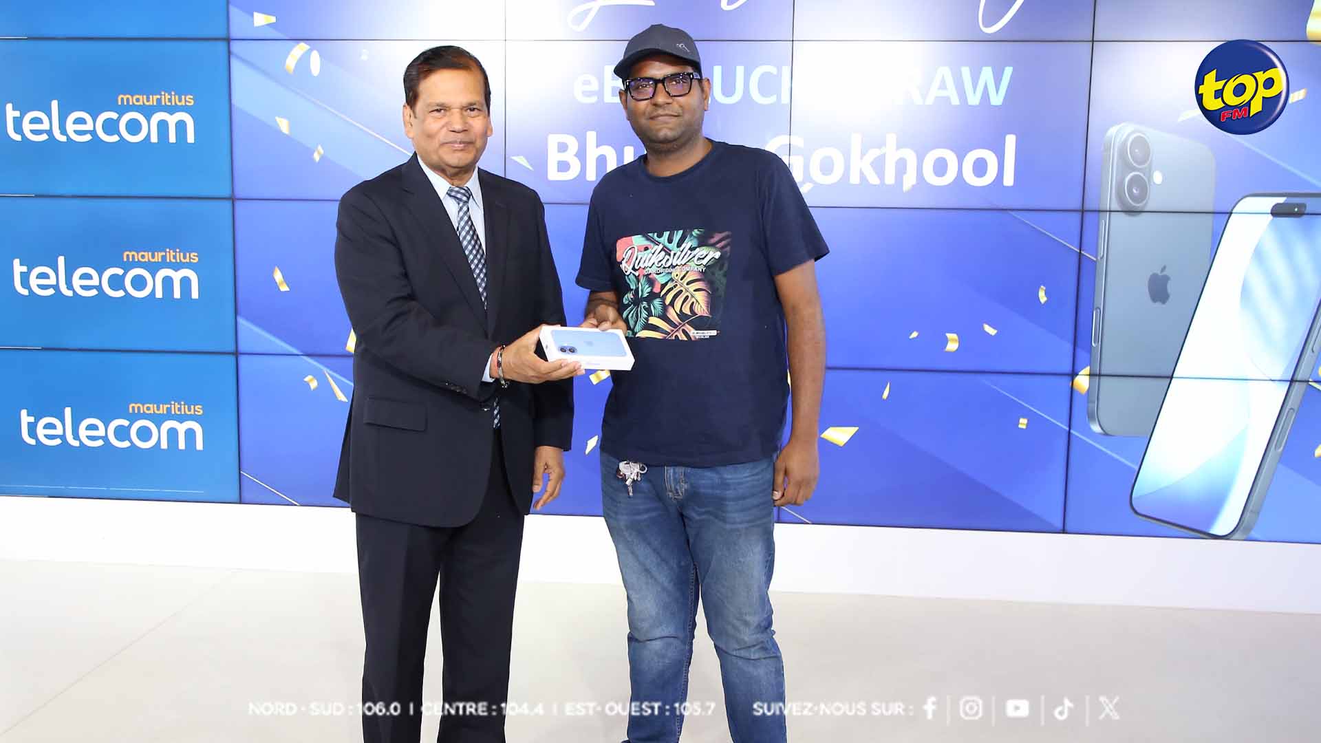 Le « eBill Lucky Draw » de Mauritius Telecom a fait son premier heureux gagnant. Bhujay Gokhool a remporté un iPhone 16, remis officiellement par le Chairman de la compagnie, Sarat Lallah, lors d’une cérémonie, ce vendredi.