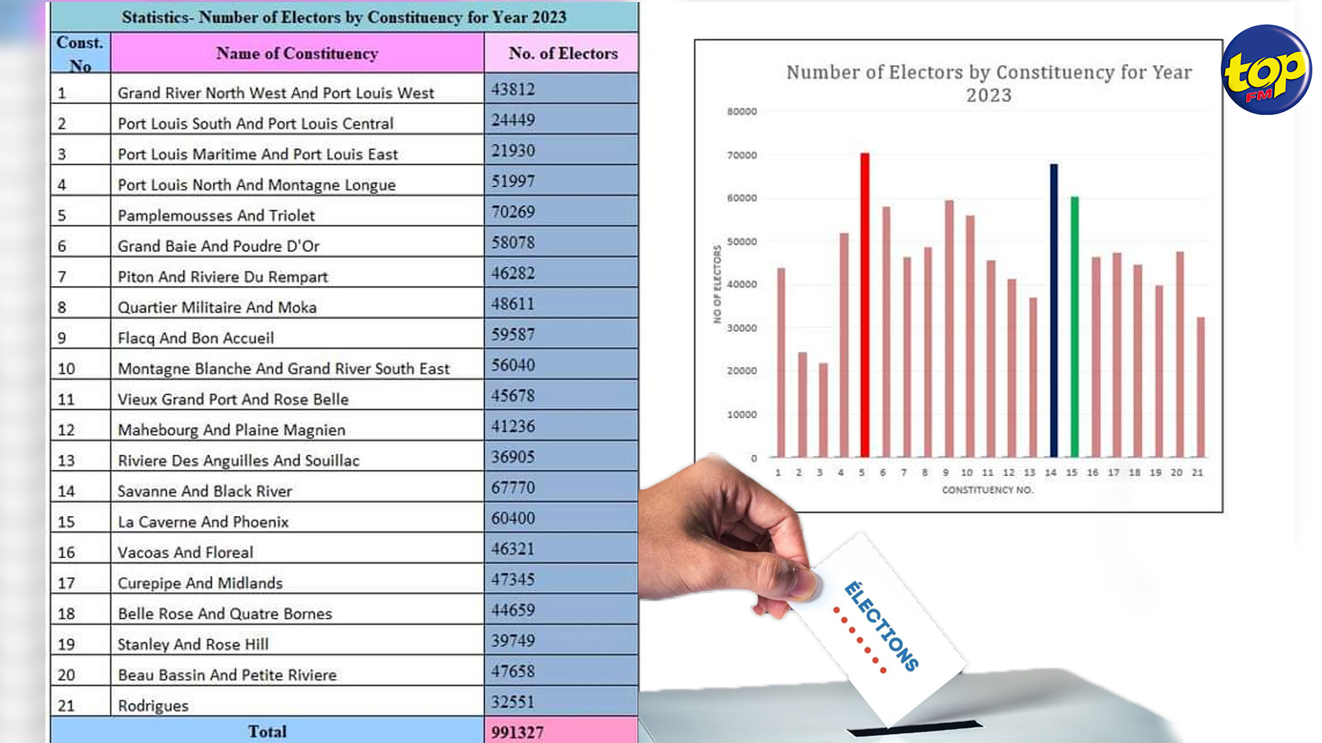 Par ailleurs, la circonscription numéro 14, soit Savanne/Rivière Noire, prend une fois de plus la deuxième place concernant le plus grand nombre d’électeurs. Le total est actuellement de 67 770 contre 64 820 en 2022. Cela représente une hausse de 2 950 électeurs.