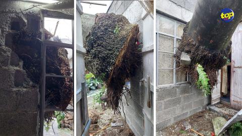 Main picture Lundi en pleine alerte cyclonique : Freddy déracine un arbre qui endommage une maison à Sainte-Croix voir plus