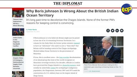 Main picture « Pourquoi Boris Johnson a tout faux sur le BIOT » : Peter Harris, chargé de cours de l’Université de Colorado, donne la réplique à l’ex-Premier ministre britannique voir plus