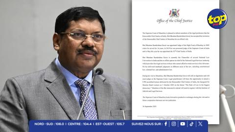 Main picture Le Chef Juge de l’Inde, Shri Bhushan Ramakrishna Gavai, en visite officielle à Maurice en octobre voir plus
