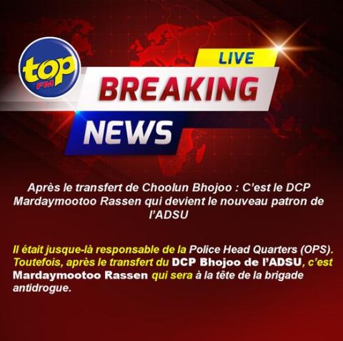 Main picture Après le transfert de Choolun Bhojoo : C’est le DCP Mardaymootoo Rassen qui devient le nouveau patron de l’ADSU voir plus