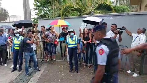 Main picture Comparution de Bruneau et Ryan Luca Laurette : partisans et amis de l’activiste présents en nombre aux abords du tribunal de Moka voir plus